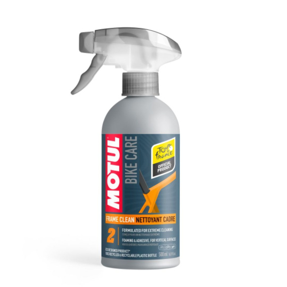 MOTUL Frame Clean to idealny środek czyszczący, pozwalający utrzymać ramę roweru szosowego w nieskazitelnym stanie. Ten silny środek czyszczący na bazie wody ma silną zdolność rozpuszczania i usuwa uporczywych zabrudzenia, takich jak kurz, piasek, ziemia, błoto i olej. Dzięki pieniącej i klejącej formule jest szczególnie skuteczny na powierzchniach pionowych, zapewniając głębokie czyszczenie ram rowerowych.